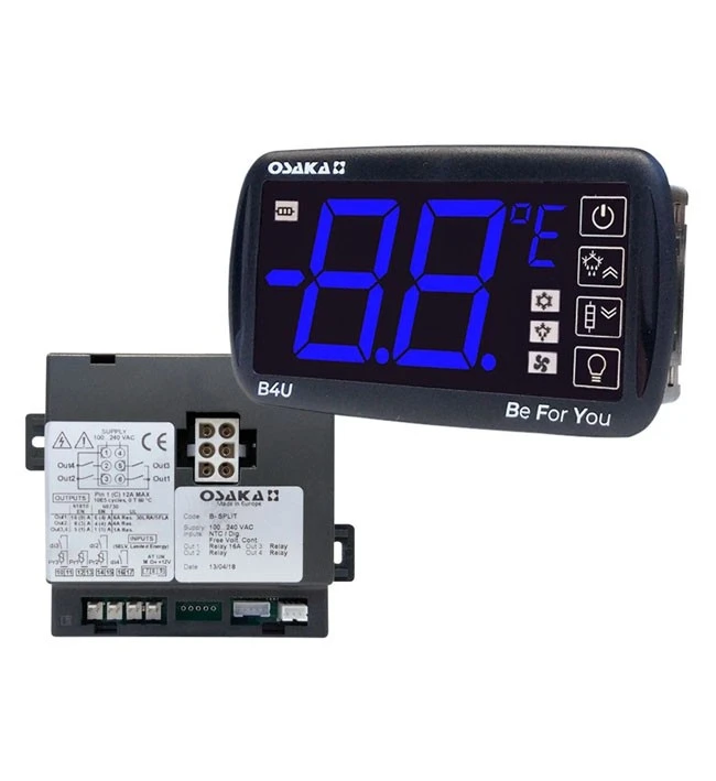 Model B4U je intuitivní ovládací panel, který kombinuje displej B4U a napájecí jednotku B4U. Je vybaven digitálním mikroprocesorem, který lze použít pro regulaci teploty v chladicích zařízeních. Je určen pro regulaci ON/OFF a odmrazování, pro dosažení teploty v časových intervalech nebo pro nepřetržitý provoz kompresoru prostřednictvím zastavení kompresoru, elektrického odporu nebo reverzace plynu / horkého cyklu. B4U má speciální funkce pro optimalizaci odmrazování a funkce, které lze využít k dosažení úspory energie v systému.