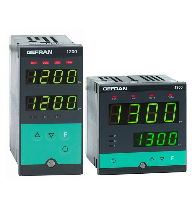 Mikroprocesorové regulátory formátu 48x96mm (1/8 DIN) pro model 1200 a 96x96mm (1/4 DIN) pro model 1300, vyrobené technologií SMT.